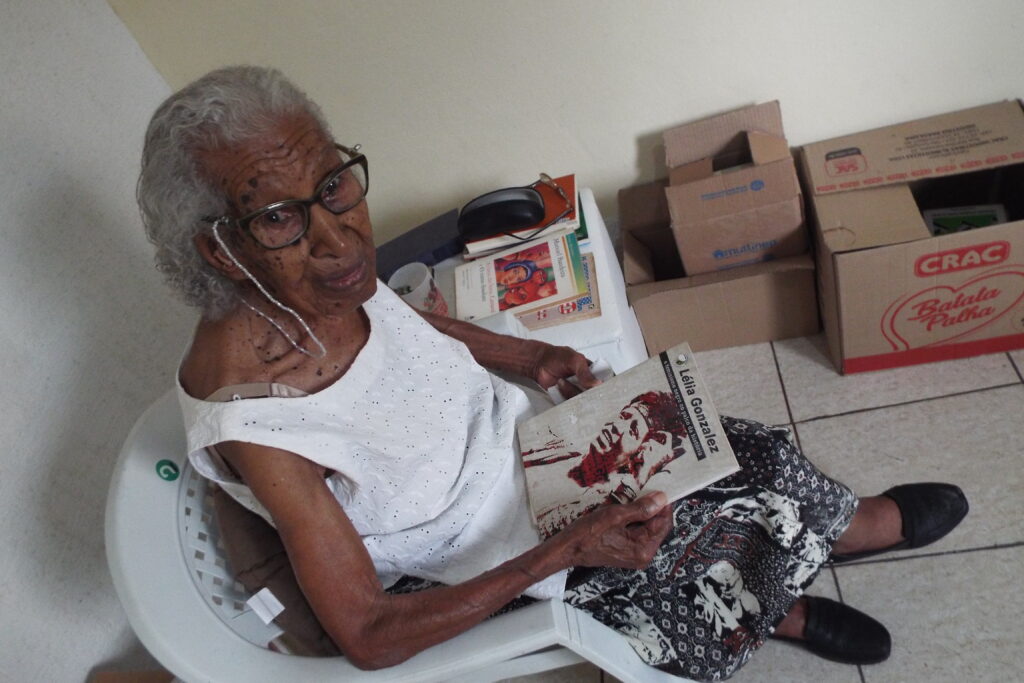 Carolina Maria de Jesus é a primeira escritora brasileira negra que Dona Maria lembra ter lido, com ‘Quarto de Despejo’. Afirma que não se recorda de mais autores negros brasileiros daquela época e puxa pela memória para chegar a Abdias Nascimento. Hoje verifica um quadro melhor e em evolução.