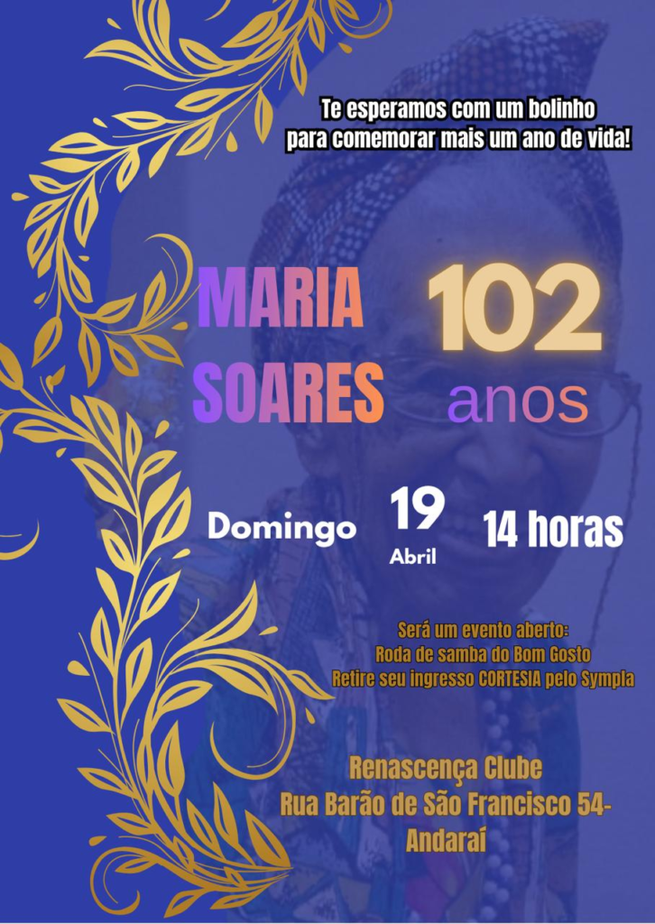 Neste domingo, 19 de abril, Dona Maria Soares faz 102 anos com lucidez, memória, compromisso coletivo e energia para militância. A comemoração será no Clube Renascença, a partir das 14 horas. Em entrevista exclusiva ao Negrxs50mais ela fala sobre sua paixão pelos livros e de sua personalidade que não consegue ficar indiferente ao que acontece ao redor. Às vésperas de ter inaugurada uma biblioteca com o acervo que acumulou ao longo da vida, mostra visão crítica sobre racismo, educação, feminicídio, LGBTQIA+fobia, política e vida coletiva.